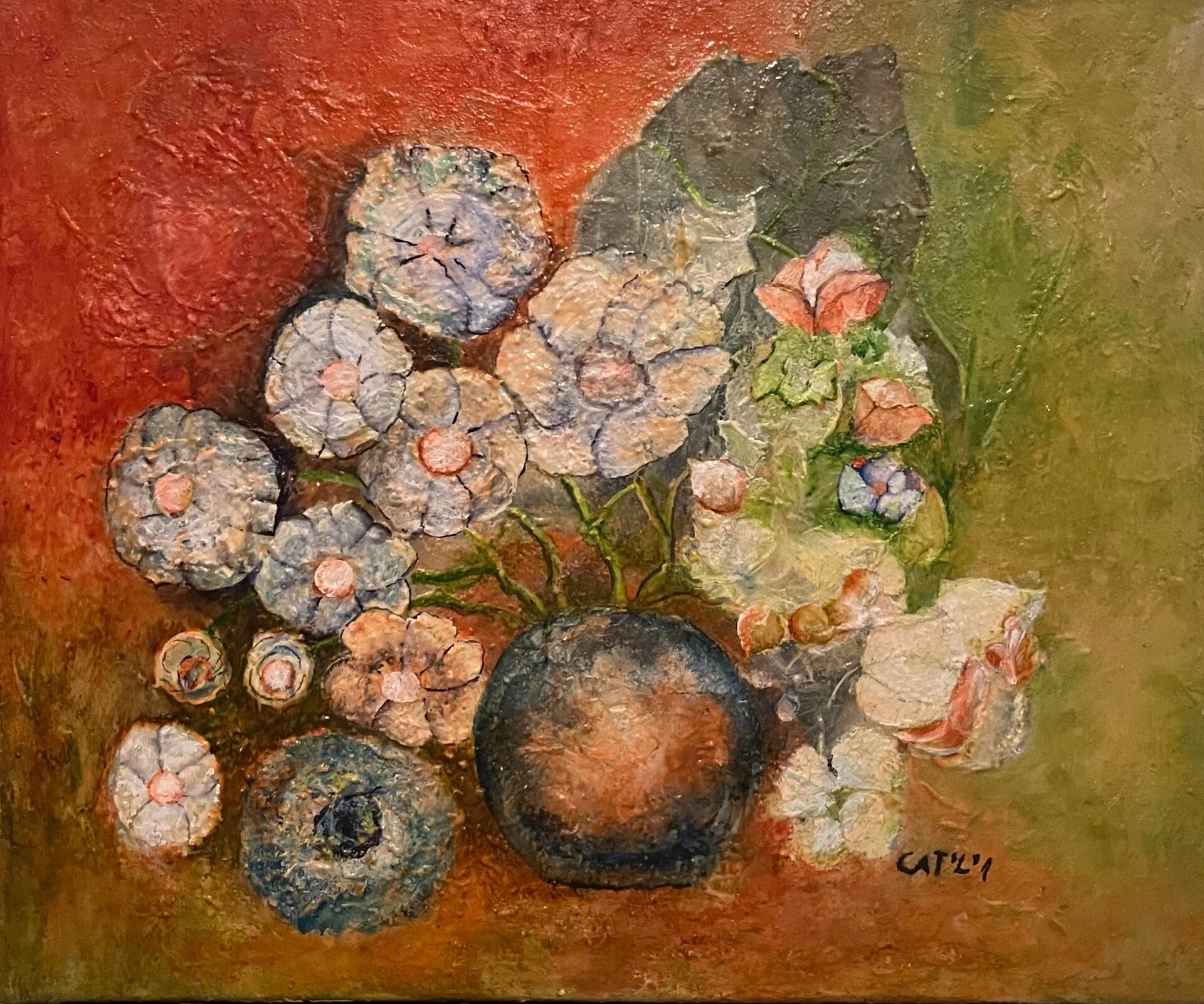 Bienvenue dans ma galerie d'œuvres. Mes peintures mi-abstraites, mi-figuratives invitent chacun à se projeter et à interpréter librement.